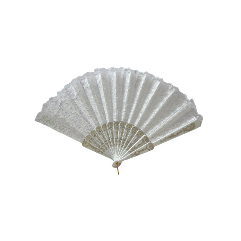 Γυναικεία πλαστική λευκή βεντάλια από δαντέλα 23cm.