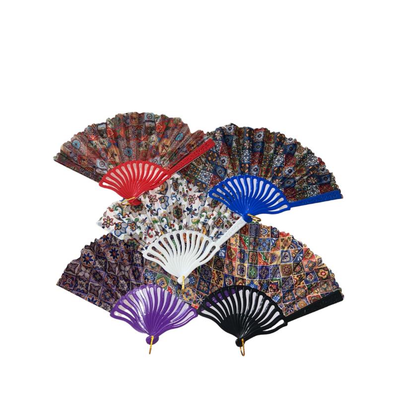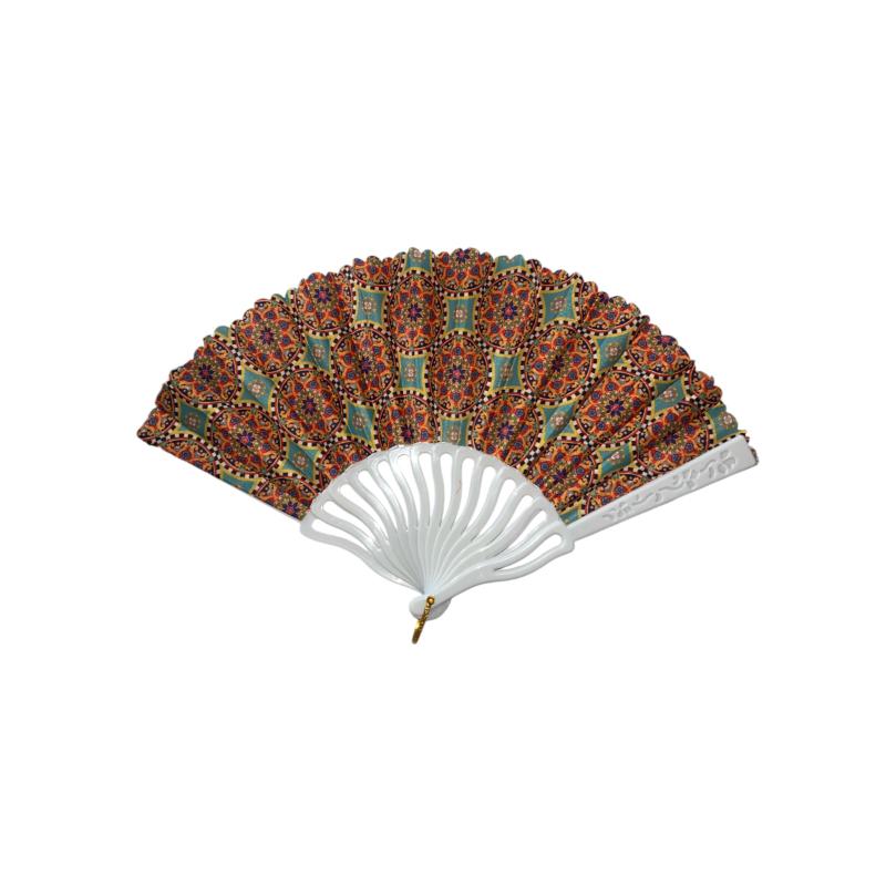 Γυναικεία πλαστική βεντάλια με σχέδια μωτίβων, 23cm. Η συγκεκριμένη βεντάλια διαθέτει πλαστική βάση με χρυσό κρίκο, ενώ το τελείωμα της αποτελείται από ύφασμα και δαντέλα. Με υλικά υψηλής ποιότητας, αυτή η βεντάλια δεν είναι μόνο πρακτική αλλά και ένα εκπληκτικό αξεσουάρ για να ολοκληρώσει κάθε εμφάνιση. Επιπλέον, ο διαχρονικός σχεδιασμός του σημαίνει ότι δεν θα φύγει ποτέ από τη μόδα. Κατάλληλη για τη ζέστη του καλοκαιριού.