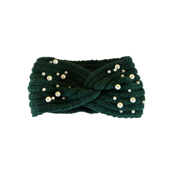 Γυναικεία κορδέλα μαλλιών μάλλινη, ντυμένη με πέρλες, μονόχρωμη, σε διάφορες αποχρώσεις.