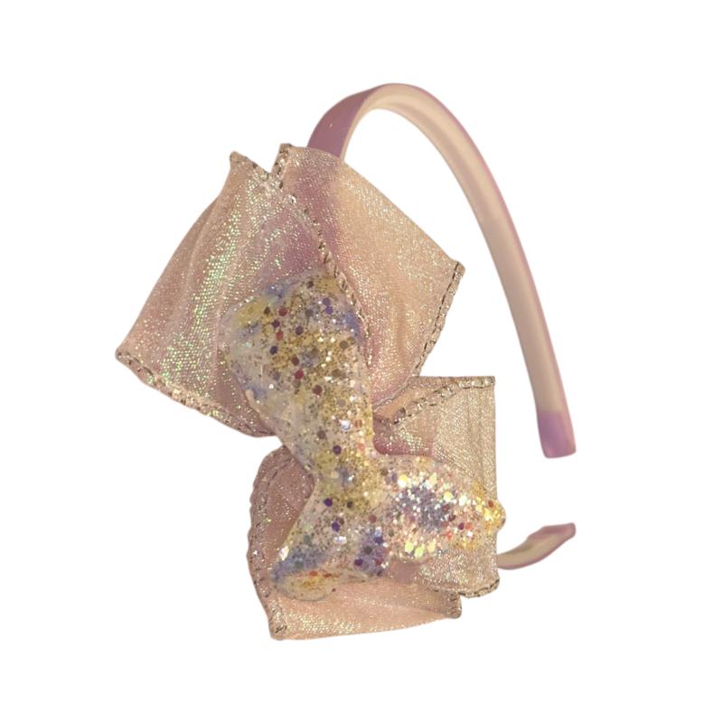 Παιδική στέκα μαλλιών με ουρά γοργόνας με στρας πάνω σε φιόγκο από αστραφτερό τούλι, σε διάφορες αποχρώσεις. Η στέκα μαλλιών μας για παιδιά είναι σχεδιασμένη με παιχνιδιάρικες και πολύχρωμες λεπτομέρειες. Η άνετη στέκα είναι απαλή στο ευαίσθητο τριχωτό της κεφαλής και παραμένει σταθερά στη θέση της, καθιστώντας την το τέλειο αξεσουάρ για παιδιά. Αντέχει στη φθορά της καθημερινής χρήσης, διασφαλίζοντας ότι θα γίνει ένα αγαπημένο αξεσουάρ που διαρκεί για τα επόμενα χρόνια. Η ευέλικτη σχεδίαση της συμπληρώνει κάθε χτένισμα, είτε πρόκειται για ένα καθημερινό είτε για ένα επίσημο look.