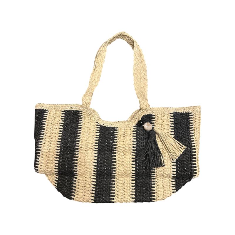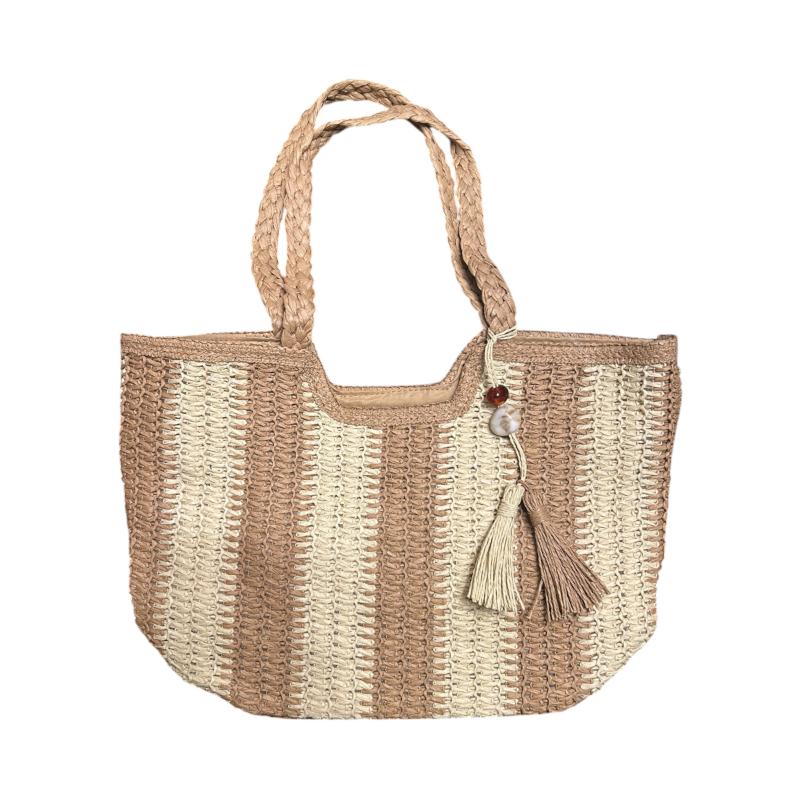 Ψάθινη τσάντα θαλάσσης με κάθετη χοντρή ρίγα