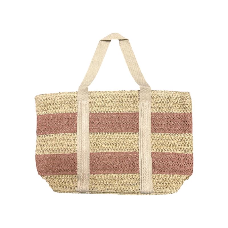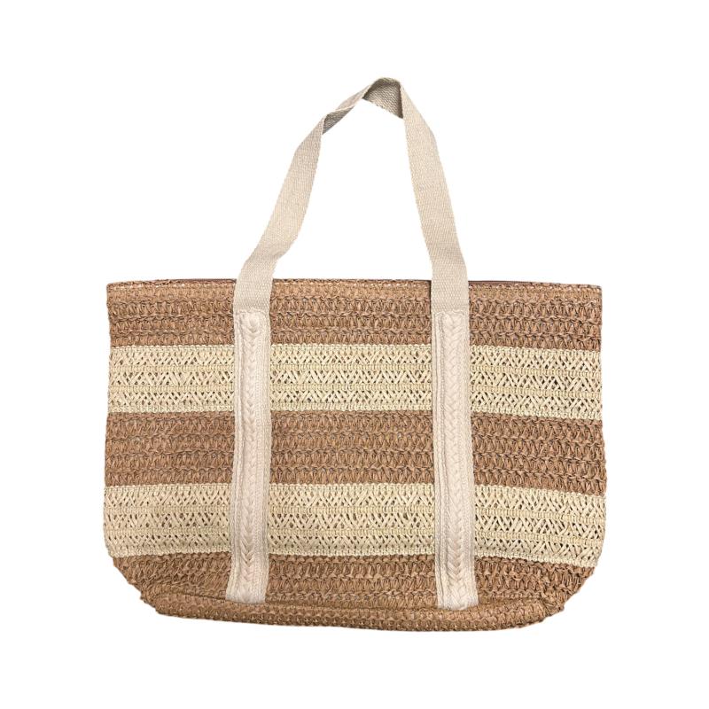Ψάθινη τσάντα θαλάσσης με χοντρή ρίγα