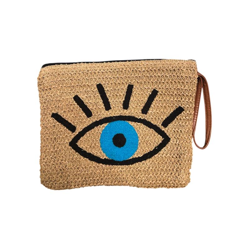 Ψάθινο νεσεσέρ/τσαντάκι θαλάσσης με ματάκι